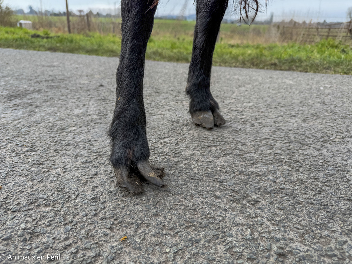 Les animaux saisis souffrent de pathologies graves : nombre d’entre eux présentent des boiteries extrêmes, conséquence d’un manque de soins des onglons. Certains sont tellement atteints qu’ils ont été contraints de marcher sur les genoux, d’autres ont dû être portés jusqu’aux véhicules des refuges.