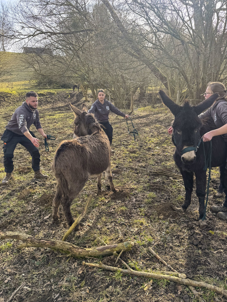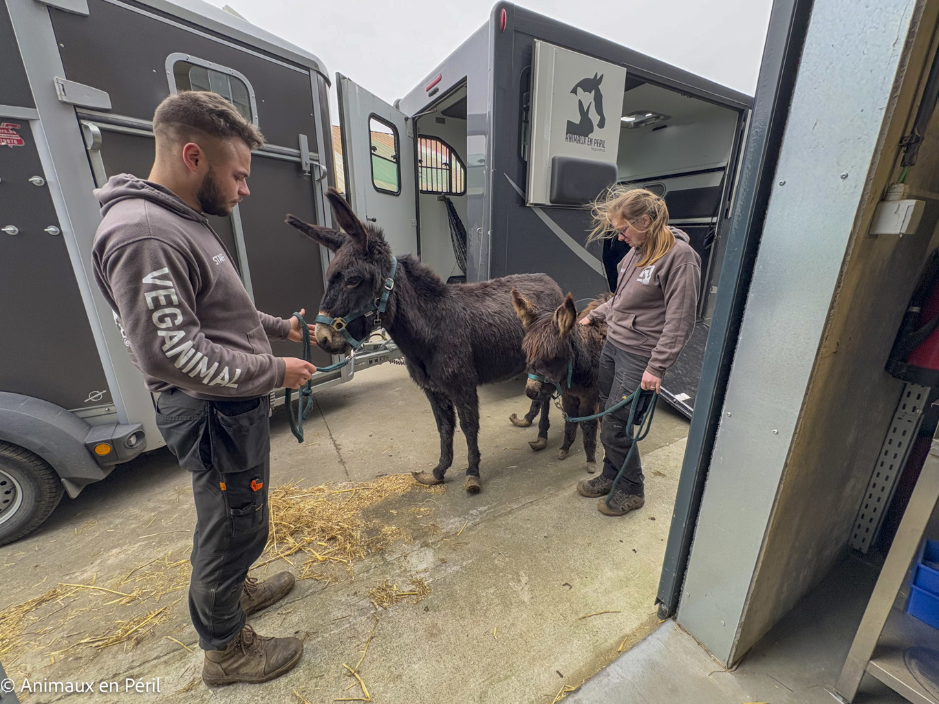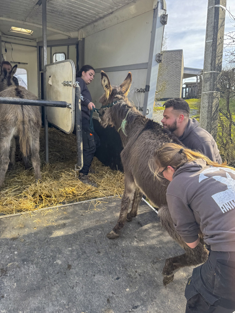 Face à cette situation d’urgence, les équipes des refuges Animaux en Péril et Le Rêve d’Aby ont immédiatement procédé à la capture des ânes afin de les transférer en toute sécurité vers leurs infrastructures adaptées. Séparés en deux groupes pour préserver les liens familiaux, les ânes ont enfin pu bénéficier d’un environnement sécurisé, au chaud et à l’abri de l’humidité.