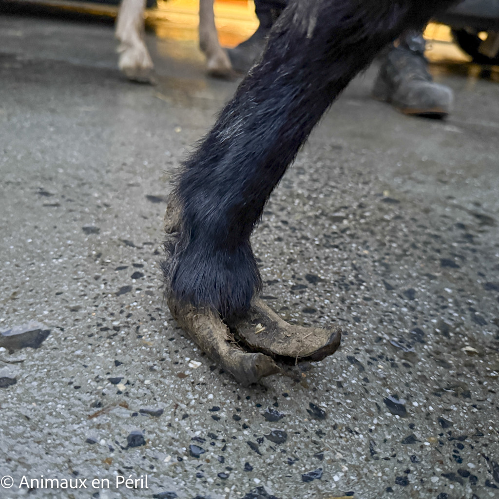 L’état de santé des animaux pris en charge est préoccupant. La vache est très amaigrie et infestée de poux. Les chèvres présentent des onglons démesurément longs, signes d’un abandon prolongé, et sont couvertes de saleté et de parasites. Quant au lapin, il souffre de lésions cutanées et nécessite des soins spécifiques pour traiter la teigne.