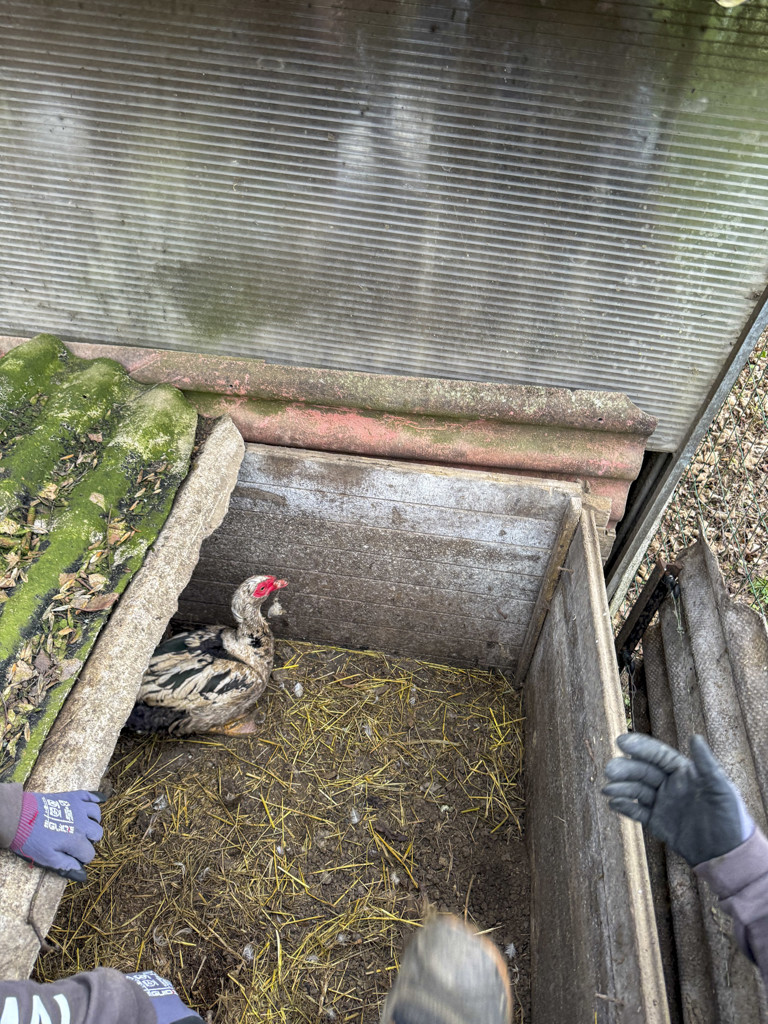 Sur ce terrain désormais bien connu des ASBL, des clapiers et des cages insalubres s’alignent, envahis de déjections, sans eau ni nourriture. Les volailles y sont parfois entassées par dizaines. Un jars est retrouvé enfermé dans un état pitoyable, incapable de se mettre debout, affaibli à l’extrême.