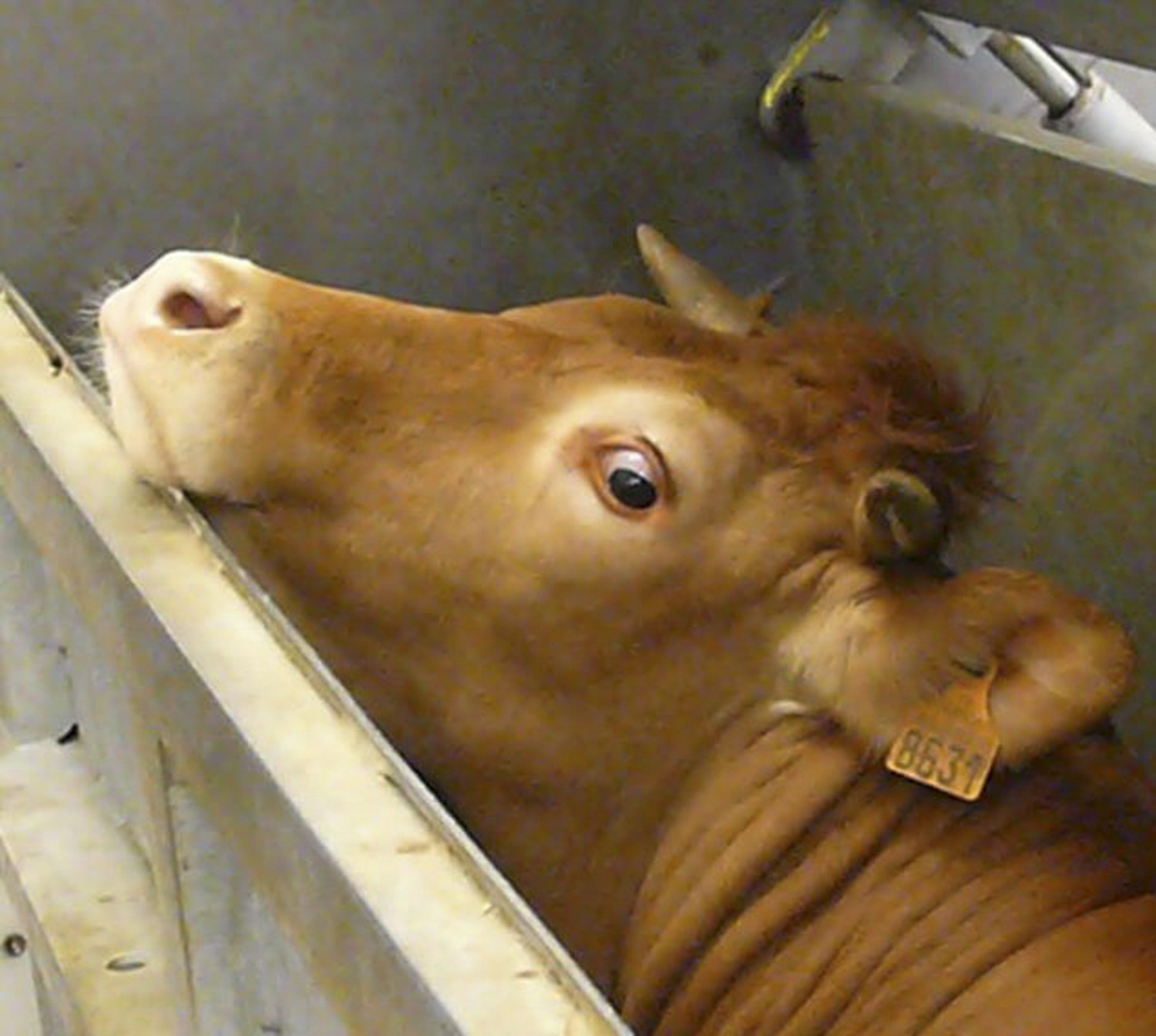 Engraissés pour leur viande, les bovins subissent de longs transports jusqu'aux abattoirs où commencent une attente interminable dans le couloir de la mort. Témoins de l'abattage de leurs congénères, les bovins présentent tous les signaux d'un stress majeur.