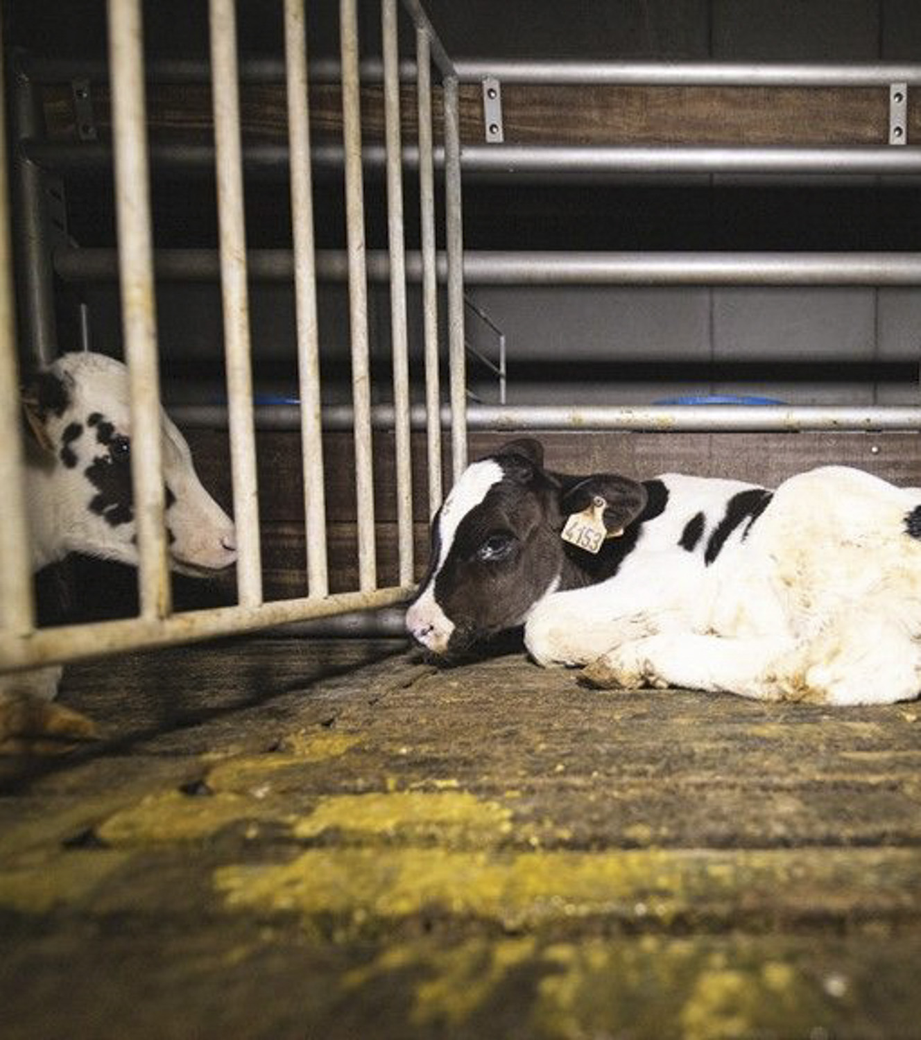 Quelques jours seulement après la naissance, les jeunes veaux sont séparés de leur mère. Les génisses deviennent laitières à leur tour alors que les veaux mâles sont destinés à l’engraissement. La vie d’une vache peut s’étendre jusqu’à une vingtaine d’années à l’état sauvage, mais en élevage elle s’achève entre cinq et six ans au bout desquels l’animal, épuisé par le rythme infernal des maternités, est mené à l’abattoir pour être ensuite consommé.