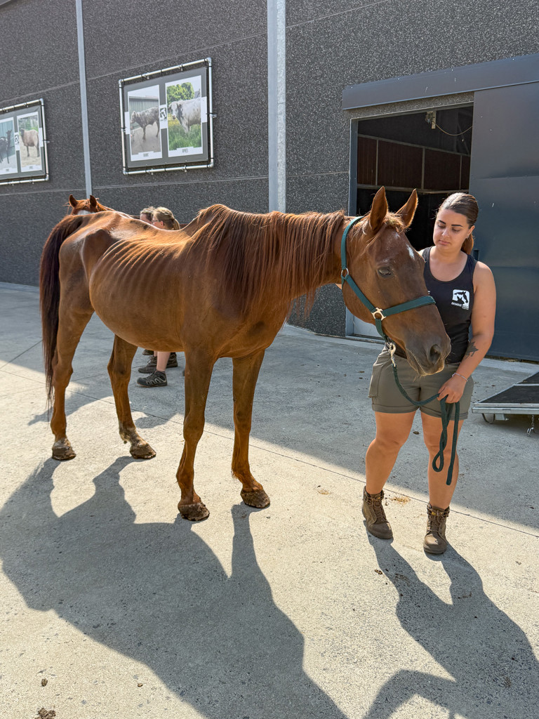 Sous la supervision des autorités, les soigneurs professionnels s’emploient à faire sortir les chevaux un à un pour les conduire jusqu’aux véhicules des refuges. Malgré leur état critique, les animaux se laissent mener sans résistance, trop affaiblis pour opposer la moindre réaction. Une fois sortis, ils sont immédiatement répartis entre les six refuges mobilisés, chacun prenant en charge plusieurs équidés afin de leur offrir sécurité, repos et premiers soins.