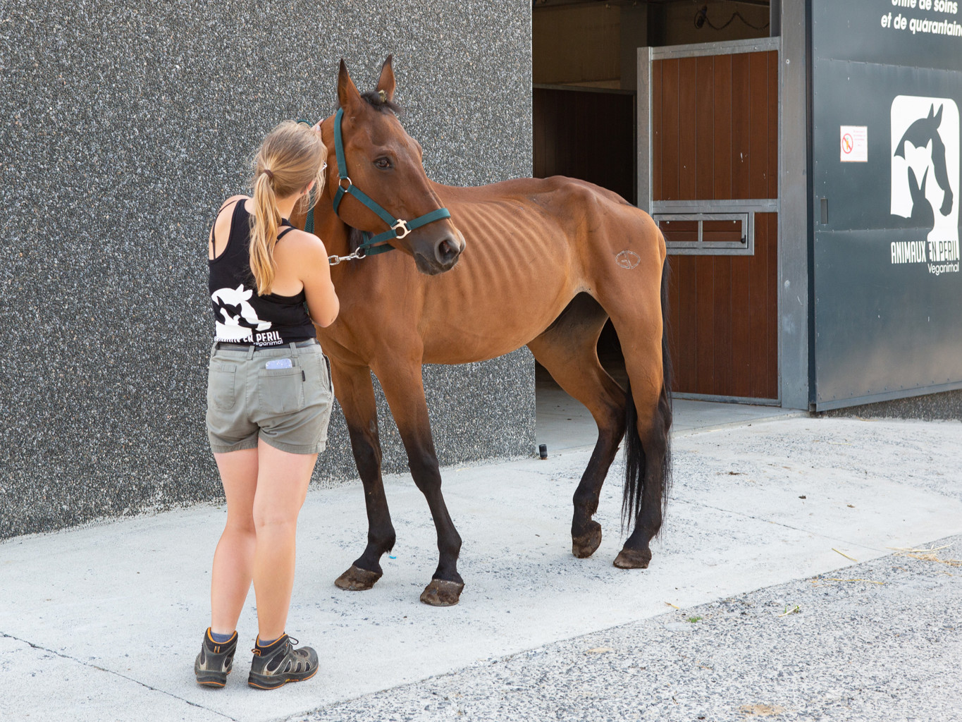 Dès leur arrivée dans les différents refuges wallons, les équidés sont placés sous surveillance rapprochée et bénéficient en urgence de consultations vétérinaires. Les équipes médicales évaluent leur état, mettent en place un protocole de réalimentation progressive et soignent les blessures ou affections liées aux conditions de détention.