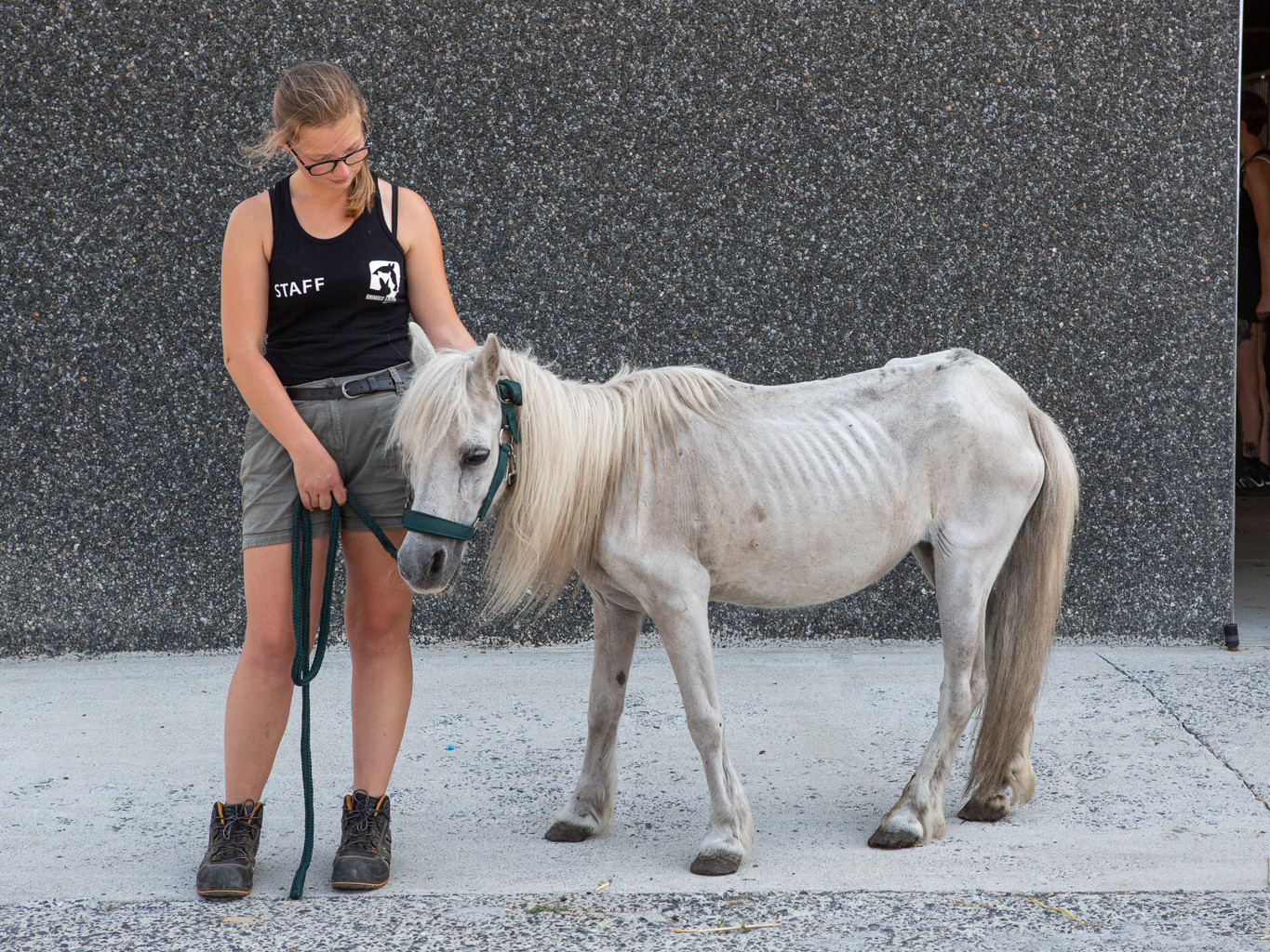 Tous les équidés présentent une maigreur extrême, et plusieurs atteignent un stade avancé de cachexie. Lorsqu’ils quittent leur box, ils chancellent sous l’effet de la faiblesse et se précipitent sur le moindre élément au sol dans l’espoir de se nourrir. Même les poneys Shetlands, connus pour conserver facilement un bon embonpoint, sont réduits à l’état squelettique. Leur état de santé est aggravé par une dentition catastrophique, empêchant toute reprise de poids sans un soin dentaire préalable.