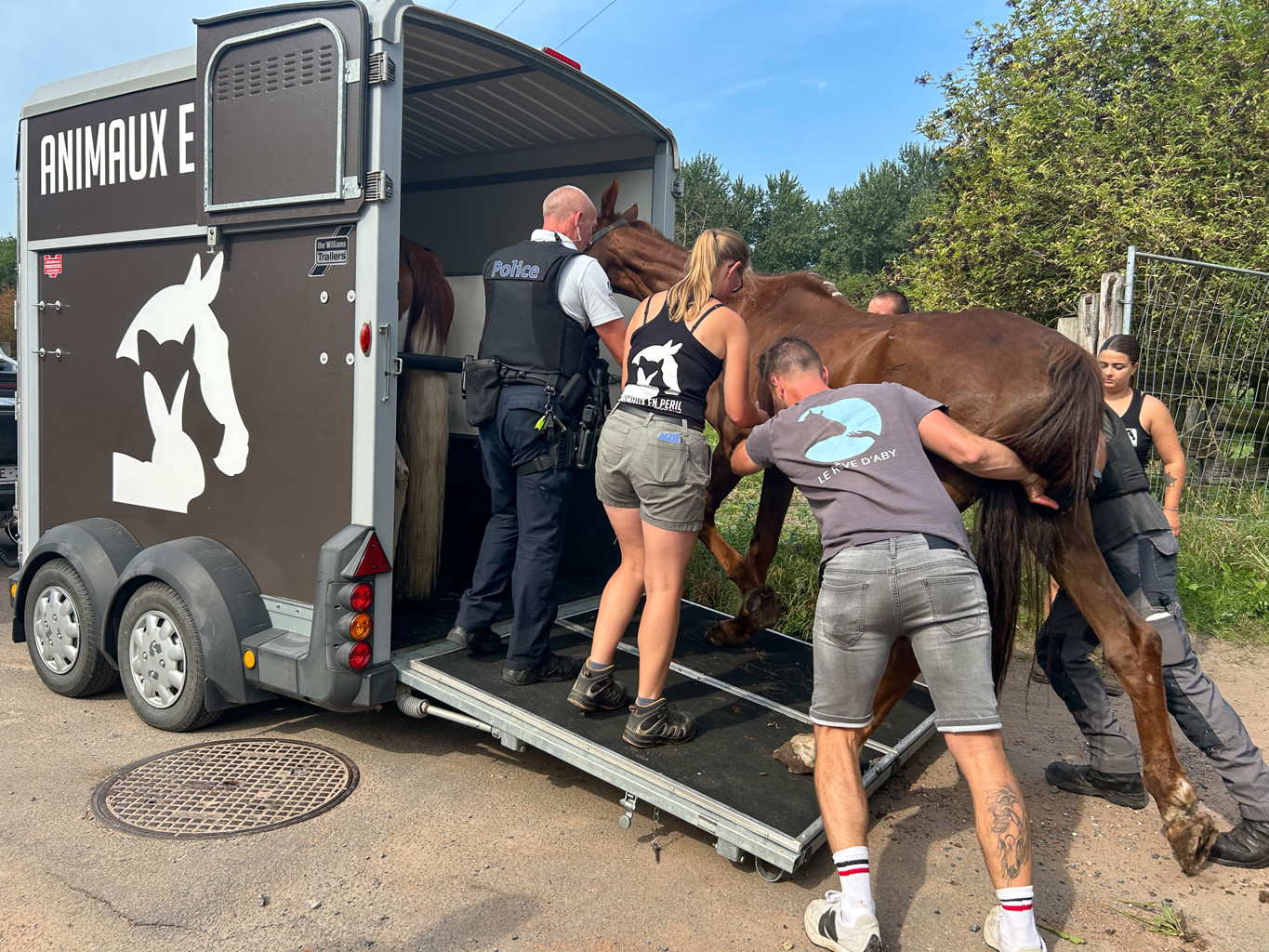 Ce jeudi 14 août, l’Unité du Bien-être animal de la Région wallonne ordonne la saisie de 13 chevaux, 5 poneys et 1 âne dans une écurie de la région montoise. Cette intervention, d’une ampleur rare, mobilise pas moins de six refuges : Animaux en Péril, Le Rêve d’Aby, Au Bonheur Animal, Help Animals, EquiRêve et Veeweyde Refuge du Marais, qui unissent leurs forces pour venir en aide à ces animaux en détresse.