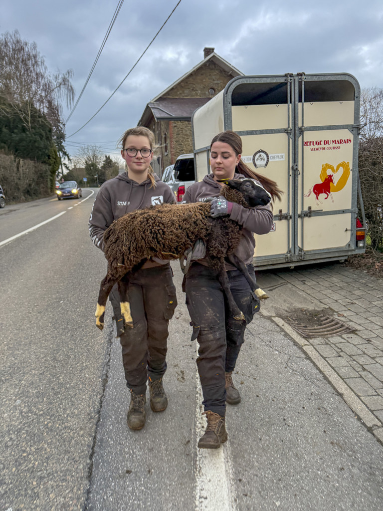 Ce vendredi 23 janvier, en fin d’après-midi, plusieurs refuges convergent vers Ciney à la demande des autorités et de l’Unité du Bien-Être Animal (UBEA) de la Région wallonne. Animaux en Péril, Le Rêve d’Aby, Help Animals, Au Bonheur Animal, Veeweyde Refuge du Marais et Equi’chance sont mobilisés à la suite d’un contrôle de l’AFSCA, l’Agence fédérale pour la sécurité de la chaîne alimentaire, déclenché en raison de déplacements anormaux d’animaux. Face à une situation dramatique, l’UBEA est appelée en renfort et ordonne la saisie des animaux. Pour la troisième fois à cette même adresse, le constat est accablant : plus de 150 animaux de basse-cour (poules, coqs, canards et oies) ainsi qu’une cinquantaine de moutons vivent dans des conditions lamentables.