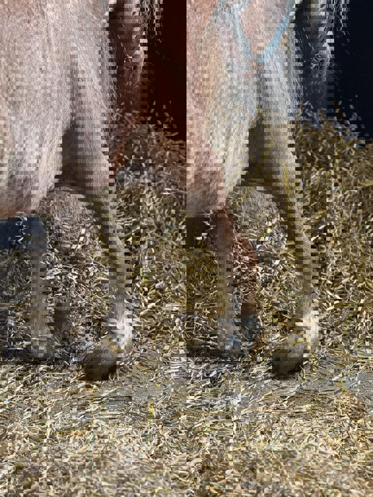 Il y a quelques jours à peine, Gina rejoignait notre refuge dans un état de santé dramatique. Saisie en urgence à Tournai, elle vivait sans eau ni nourriture, incapable de marcher correctement à cause d'une ancienne fourbure gravement négligée. Ses sabots étaient si longs que son pied s’était retourné, l’obligeant à avancer en se posant directement sur l’os. Son corps portait les marques visibles de mois, voire d’années, de souffrance silencieuse.