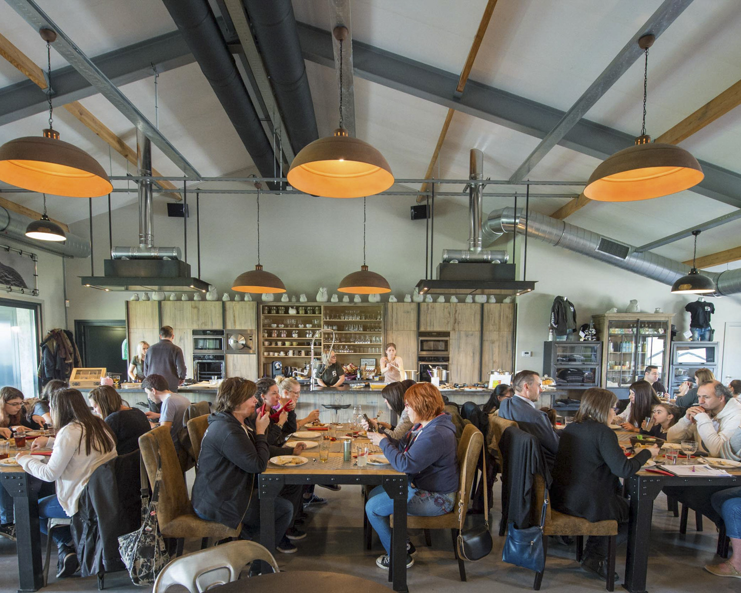 Le centre d’accueil pour visiteurs est davantage qu’une simple cafétéria. Si les promeneurs, après la découverte du refuge, peuvent s’y détendre devant une bière bio ou de la petite dégustation végane, la convivialité et le confort des lieux servent un but plus large. Tout, à Animaux en Péril, se veut un outil de sensibilisation.
