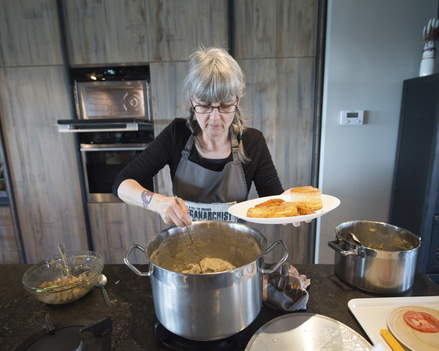 Un week-end sur deux à Meslin l’Evêque, une équipe de bénévoles, chacun affecté à une tâche bien particulière, est à la disposition du public: l’un vous accueille au bar, l’autre vous accompagne à la rencontre des animaux et vous fournit toutes les explications sur les activités des refuges. Le troisième met les petits plats dans les grands au moyen d’ingrédients non issus de l’exploitation animale, et vous propose de petits mets à base de saveurs exclusivement végétales. Ces dernières représentent une alternative à l’alimentation carno-lactée, majoritaire dans nos sociétés, mais de plus en plus décriée par les amoureux des animaux, les défenseurs de la nature et d’une alimentation aussi saine qu’éthique.