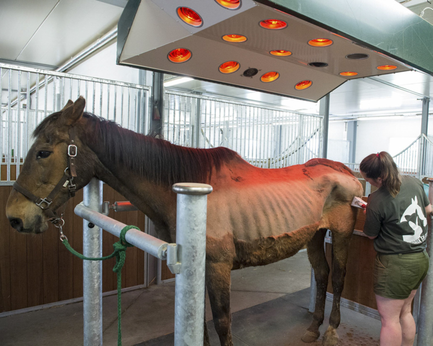 Assurer le bien-être de nos animaux, c’est aussi équiper le refuge en matériel adéquat pour la revalidation, la convalescence et le suivi médical des animaux, une obligation pour qui héberge une majorité de victimes de maltraitance. Née de ces préoccupations, l’écurie de soins et de quarantaine reçoit les nouveaux venus qui nous parviennent malades, épuisés ou dans un état sanitaire inconnu; elle accueille également les pensionnaires qui nécessitent des soins particuliers ou un écartement temporaire du troupeau.