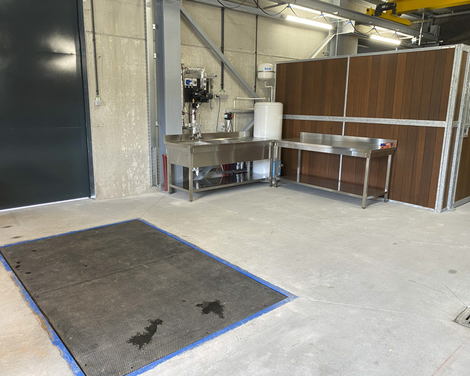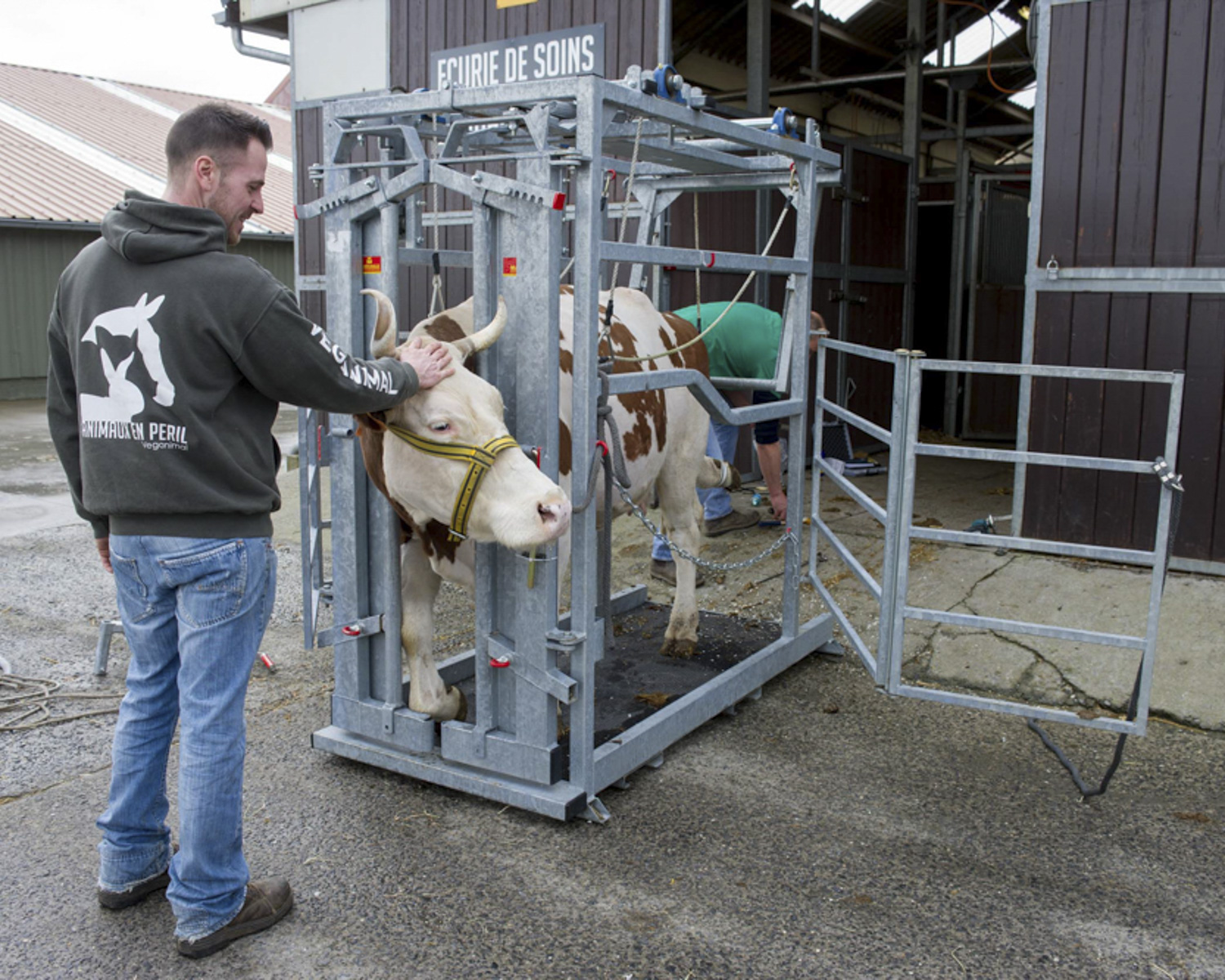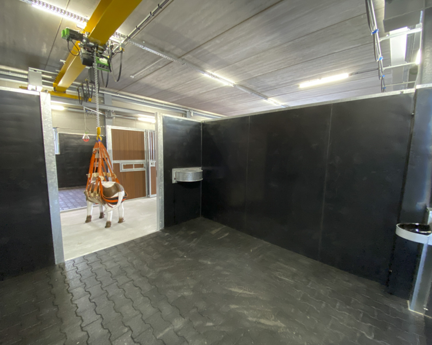 • Un grand pont roulant, équipé d’un palan pour relever électriquement les gros animaux en situation de faiblesse.