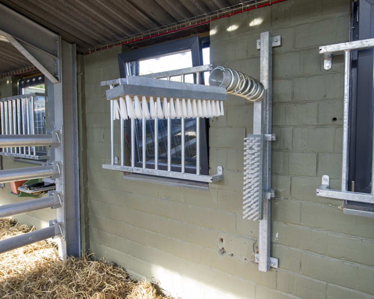 Les stabulations sont également pourvues de blocs de sel nécessaires au métabolisme des animaux, et équipées de brosses de grattage contre lesquelles ils peuvent se frotter; ces dernières sont à ce point indispensables à leurs besoins éthologiques qu’on les retrouve même au sein des élevages industriels, pourtant avares en termes d’aménagements en faveur du bien-être de leurs bêtes.