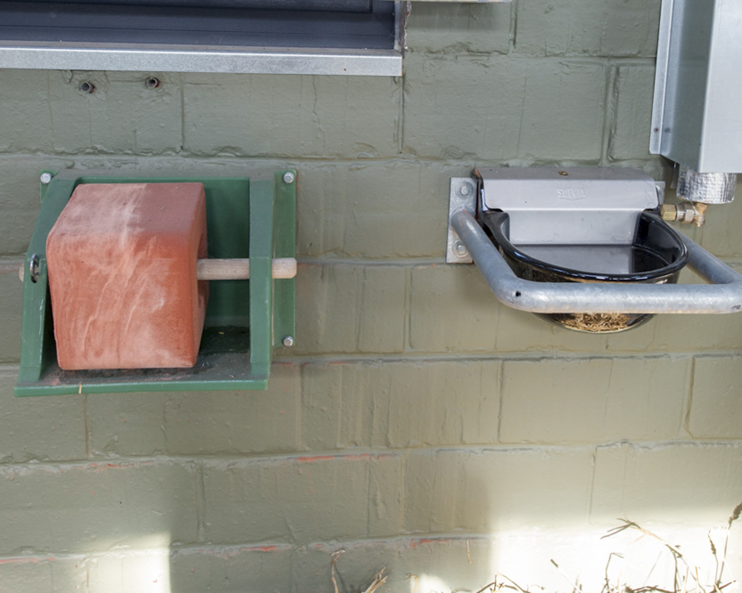 Les écuries bénéficient d’abreuvoirs automatiques équipé d’un circulateur-réchauffeur qui maintient l’ensemble du système hors gel en hiver.