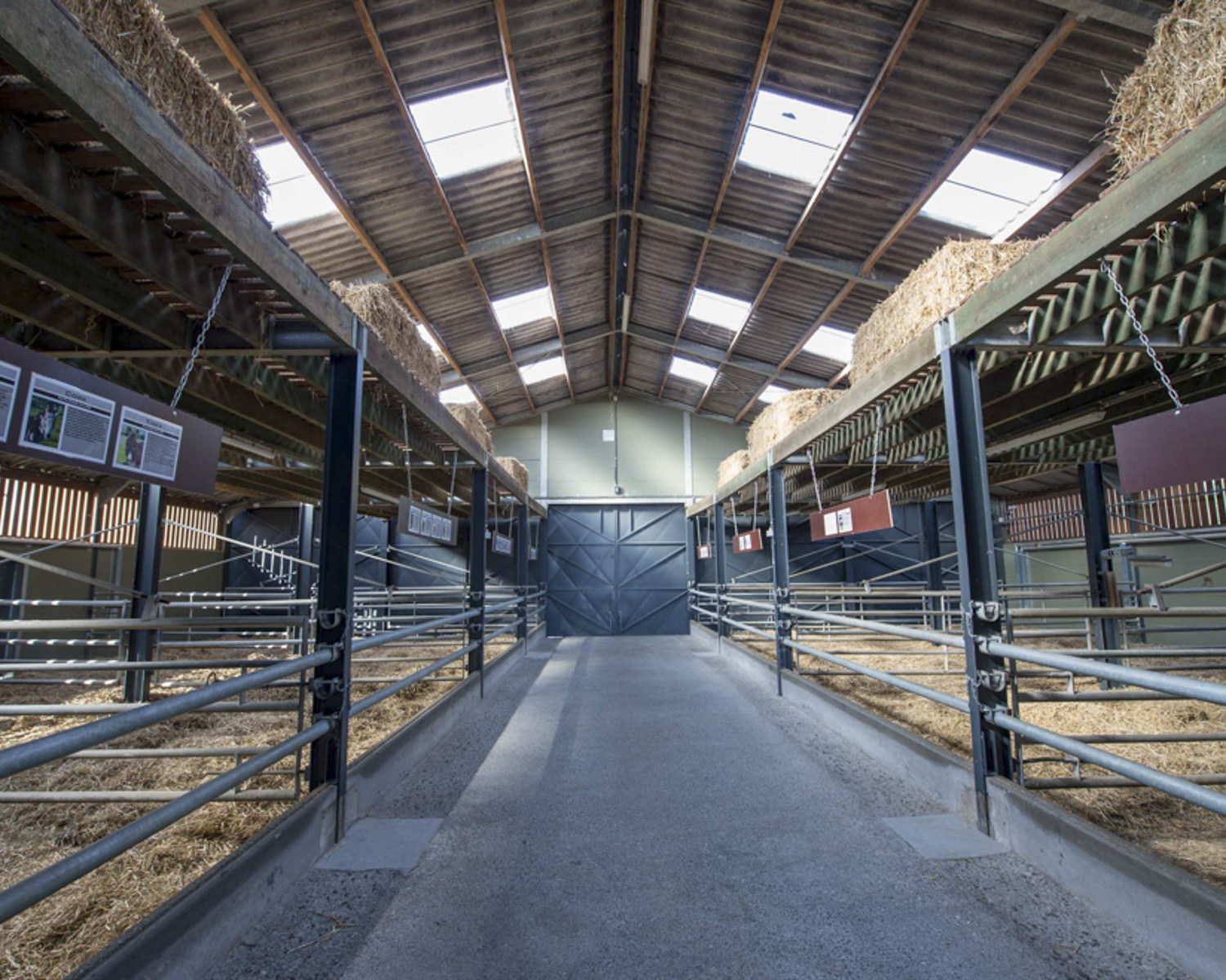 À Grosage, le bâtiment est divisé en trois larges stabulations qui offrent aux moutons les plus craintifs la possibilité de se déplacer comme ils le souhaitent.