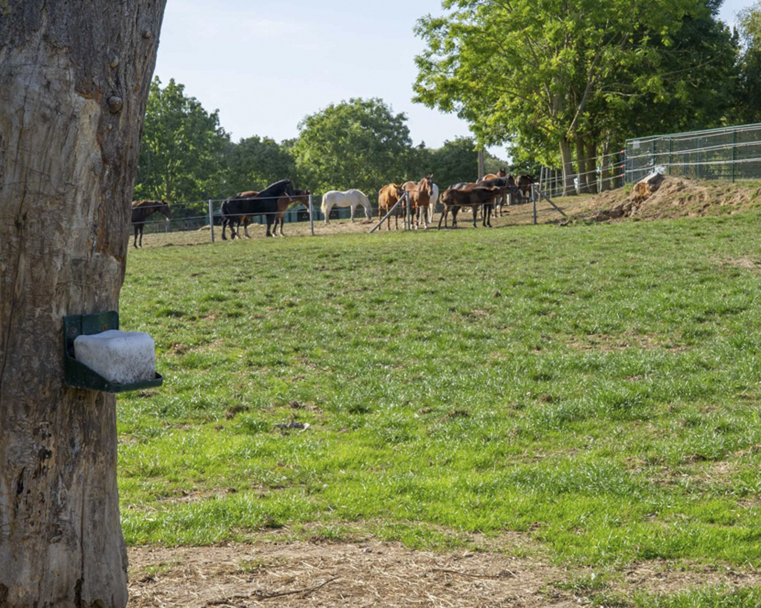 Le refuge utilise également un engrais favorisant la croissance de l’herbe, et fauche les refus (les zones herbeuses que le cheval refuse de manger) pour éviter leur extension.