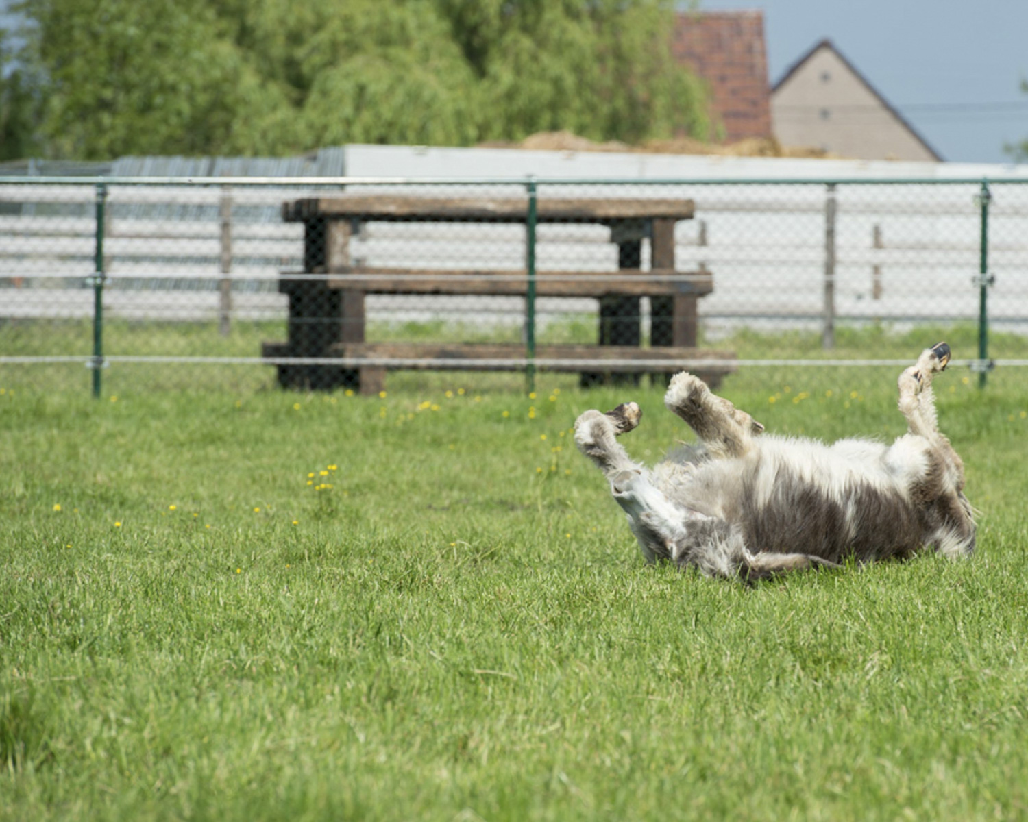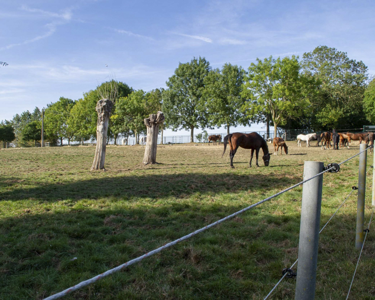 Autour du refuge filent des prairies qui ondulent sur dix hectares piquetés de saules, de frênes et de peupliers. Ces étendues sont divisées en une dizaine de parcelles clôturées et ceinturées par les sentiers destinés aux visiteurs. Une fois le beau temps revenu, nos animaux goûtent le plein air au sein des grands espaces qui seront leur lieu de vie pendant toute la belle saison.